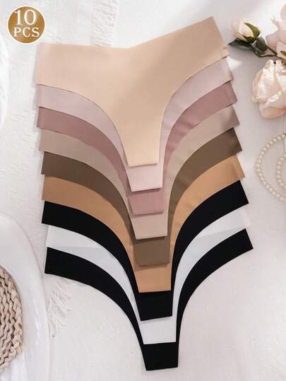 10pcs Women's Seamless Thong Panties, Sexy, Breathable, Stretchy, Comfortable, Multi-Color - Multicolor - View 1