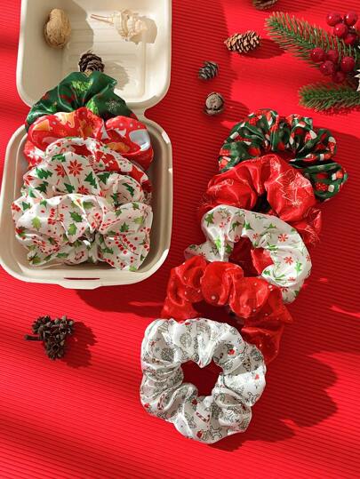 10pcs Women's Simple & Versatile Christmas Hair Scrunchies Set, Durable Bow Scrunchies Combo For High-end Party Decoration - Multicolor - View 1