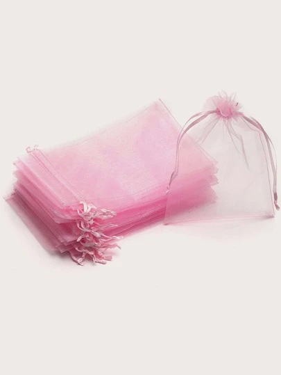 10pcs/set Organza Gift Bag For Jewelry, Drawstring Pouch For Wedding Candy Gift Bags Jewelry Packing - Pink - View 1