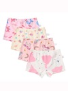5pcs Tween Girl Solid Color & Letter Print Patchwork Minimalist Bikini Briefs