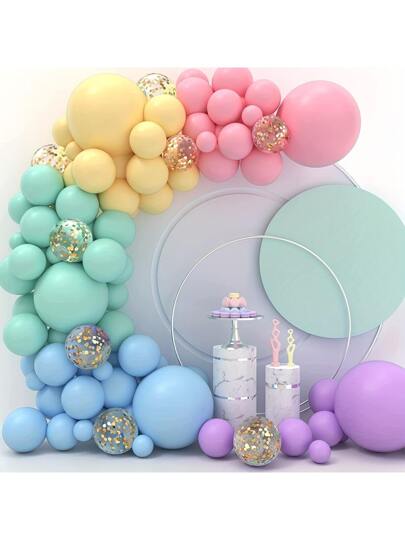 117pcs Macaron Colored Rainbow Balloons, Confetti Balloons, Flower Garland Arch Set For Unicorn Themed Children Birthday & Baby Shower Party Decoration, Christmas - Yellow - View 1