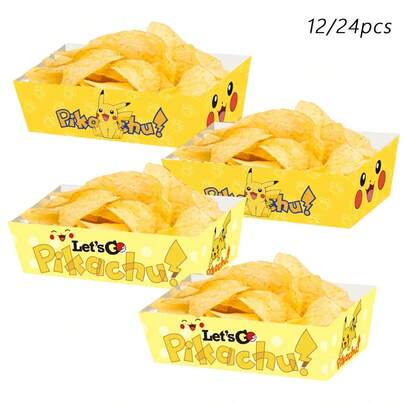 12/24pcs Pokemon Paper Plates, Pokemon Paper Trays, Birthday Wedding Party Food Boxes - Multicolor - View 1