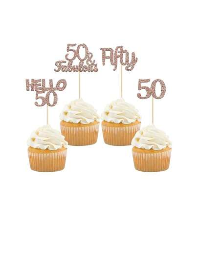 12 Pcs Glitter 50th Birthday Cupcake Toppers Hello 50 Fifty Cake Decorations 50 & Fabulous Cupcake Picks for 50th Birthday Cake Decorations Supplies - Multicolor - View 1