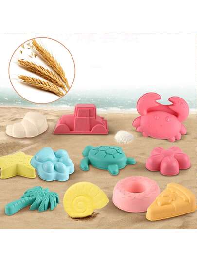12-Piece Children's Beach Toy Set, Beach Bucket Set, Thickened Sand Digging Bucket And Digging Tools Made Of Wheat Straw, Sand Digging Tools, 12-Piece Beach Interactive Toy Set. - Multicolor - View 1