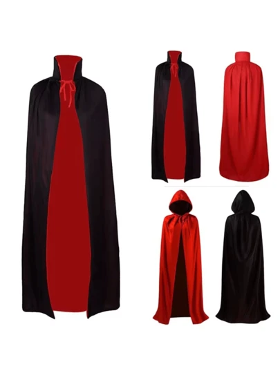 120cm/140cm/150cm Halloween Double-Layer Black And Red Cape Cloak, With Hood And Stand-Up Collar Style, Vampire Death Cosplay Cloak, Halloween Party Decoration, LARP Party Supplies, Stage Performance Accessory Decoration - Multicolor - View 11