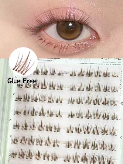 120pcs Caramel Brown Stemless Sunflower Glue-Free False Eyelashes, Transparent & Natural Looking Segmented Self-Adhesive C-Curl Eyelash - C - View 1
