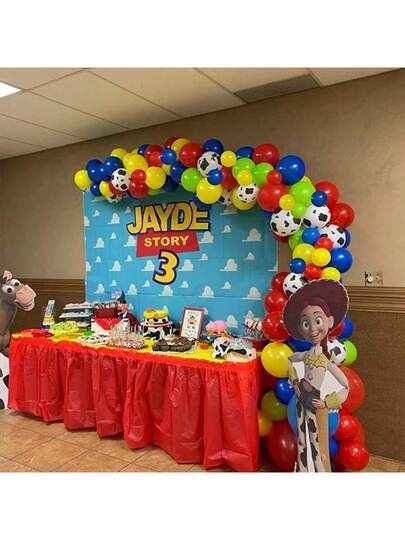 122pcs Theme Balloon Arch Set, Red, Blue, Yellow Balloons Including Cow Pattern Balloons, Suitable For Boys, Girls Story Theme Party, Birthday Party Decoration - Multicolor - View 3