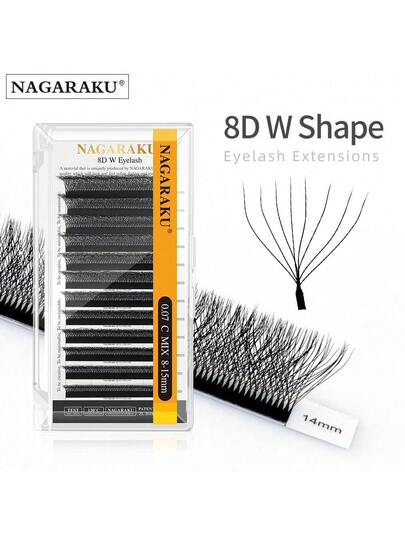 12Rows NAGARAKU 8D W Lashes 0.07 C/D 8-15mm Premade W Fan Lash Extensions Natural Soft Black W Style Lashes Faux Mink Individual Lashes Lash Clusters,Eye Lash Clusters,Individual Eyelashes,Lashes,Fake Lashes - D - View 1