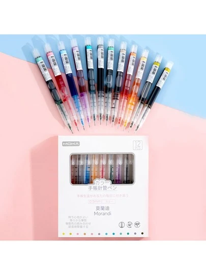 12colors/box Colorful Liquid Ink Ballpoint Pens, Neutral Pens - Apricot - View 11