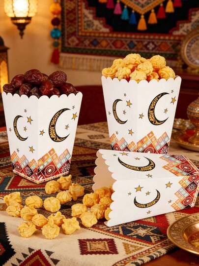 12pcs/1pc/Eid Popcorn Box, Date Box, Ramadan Packaging Box, Suitable For Dates, Candy, Popcorn, Chips, And Other Snacks; Eid Party Packaging Box. - Multicolor - View 5
