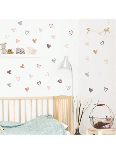12pcs Beautiful Heart Shaped Stickers, Self-Adhesive Wall Decals For Baby Room Decor, Suitable For Children Room Decor - Multicolor - View 1