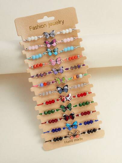 12pcs Handmade Woven Colorful Animal & Butterfly Polymer Clay Bracelet Set, Suitable For Parties, Vacations, Gifts, And Daily Wear - Multicolor - View 1