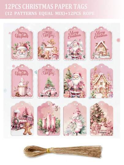 12pcs Christmas Decorations, Pink Wooden Hang Tags, Gift Arrangements, Party Supplies, Pendant Decorations - Multicolor - View 1