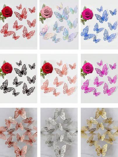 12pcs/Set 3D Hollow Butterfly Wall Stickers, Cake Decorative Stickers, Gift Decorative Stickers, Home Living Room Decor, Holiday, Birthday, Party Decor, Stickers, Wall Decals, Vinyl Stickers, Home Decor, Spring Decorations, Home Refresh, Rama Decorative Sticker Gifts, Graduation School Decor, School Surprise, Dorm Decor, Back To School Supplies - Multicolor - View 12