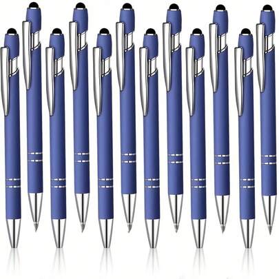 12pcs/Set Blue Ballpoint Pen, 2pcs Pens + 10pcs Refills - Metal Retractable Ballpoint Pen With Touch Screen Function, Suitable For Office Use - 12 - View 1