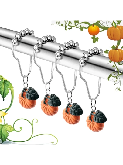 12pcs Set Of Orange Pumpkin Decorative Shower Curtain Hooks With Ball Bearings. Features Waterproof, Rust-Resistant Metal Rings For Easy And Secure Installation. Ideal For Bathroom, Bedroom, And Kitchen Accessories. Create Personalized Christmas Gifts-Perfect As Temporary Presents Or Festive Decorations. Discover Creative Inspiration, Handmade Christmas Cards, Popular Gift Recommendations, And Curated Holiday Gifts. - Yellow - View 6
