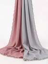 1pc Chiffon Long Scarf With Pearl Beaded Wavy Trim, Decorative Sunscreen Middle Eastern Headscarf/Hijab For Women