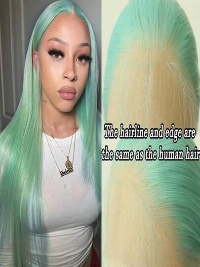13x3.5 Inch Platinum Mint Green Synthetic Lace Front Wig, Straight Black Synthetic Lace Front Wig With Pre-Plucked Hairline, Heatproof Fiber Wig For Women - Multicolor - View 11