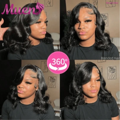 13x4 Lace Frontal Wig Human Blended Hair Wig Body Wave 5x5 Pre Cut HD Lace Front Closure Wig Wear And Go Glueless Blended Hair Wig Natural Black Color Pre Plucked With Baby Hair - Natural & Black - View 10