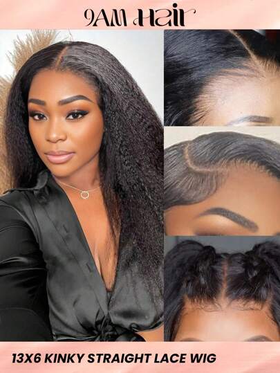 13x6 Kinky Straight Lace Front Human Hair Glueless Wigs 180% Density Yaki Straight Transparent Lace Wig Human Hair Wigs For Women Pre Plucked Brazilian Virgin Hair Natural Color - Natural Black - View 9