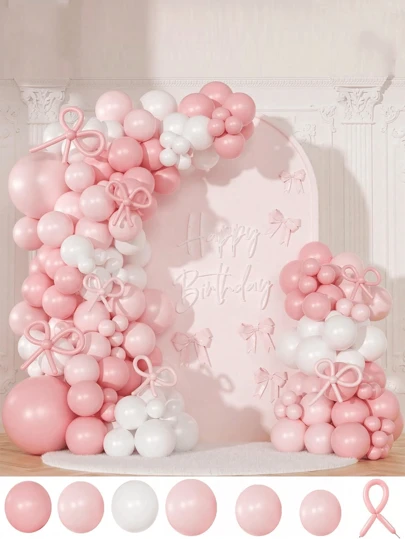 145Pcs Birthday Decorations Bow Pink And White Balloon Arch Kit Include Bow Balloon Light Pink White Bow Balloon For Pink Bow Birthday Party Decorations - Multicolor - View 1