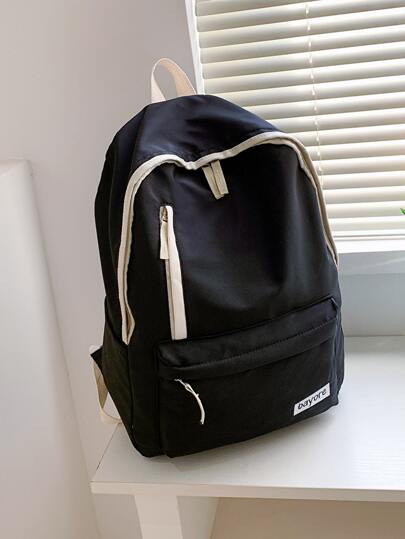 14L Waterproof Men Letter Patch Decor Casual Daypack School Backpack Bookbag Black Backpack Travel Essentials Vacation Holiday School Supplies For School College Students Men Gifts - Black - View 1