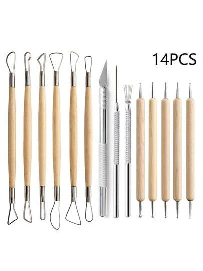 14pcs Ceramic Art Tools Set, Including Clay Sculpting Needle, Detailing Needle, Dotting Pen, Flat Wire, Art Knife - Clay Tools - View 1