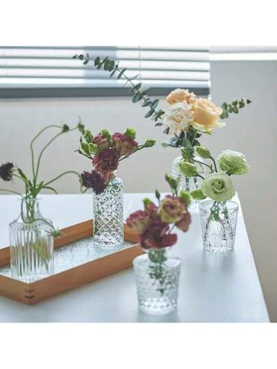 15pcs/Set Glass Bulb Vases - Mini Curvy Vases For Wedding Decoration, Home Table Centerpieces, Embossed Small Vases, Entrance Hall Flower Vases Decor Home Decor Room Decor Glass Vase - Multicolor - View 1