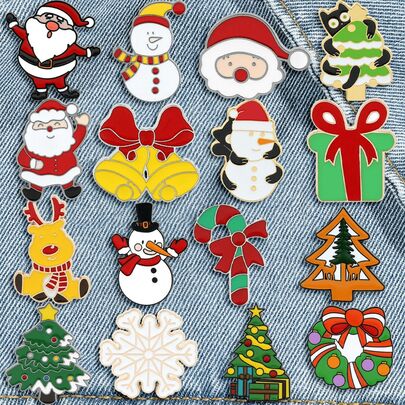 16 Pcs Fashionable Cartoon Character Brooch Holiday Gift Design Enamel Pin Backpack Clothing Accessories Metal Badge Accessories Gifts - One Size - View 1