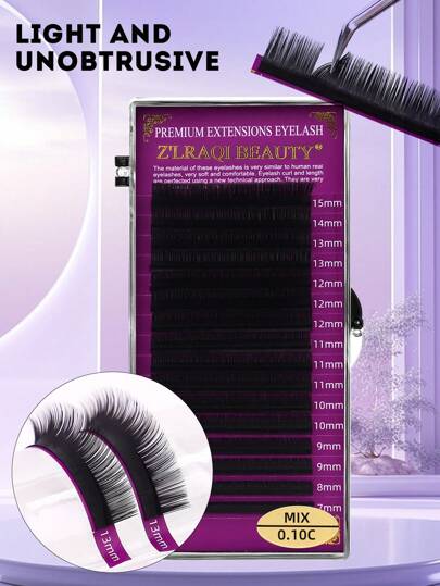 16D C Curl Black Lash Extension, Natural Soft Curved Style, 0.07/0.1mm Synthetic Mink Hair, Natural Comfortable No Shedding Lash, 8-15mm Handmade Individual Eyelash Extension, For Women Beauty Use - C - View 1