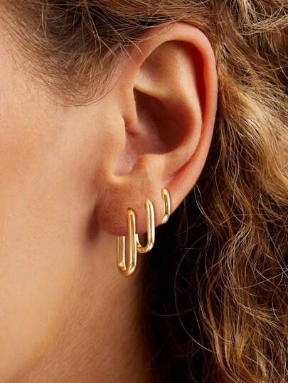 17KM 6pcs Set Fashionable Minimalist Elegant Vintage Geometric Square Copper Ear Studs, Multi Sizes, Suitable For Holiday, Party, Date, Gift, Daily Wear - Yellow Gold - View 1
