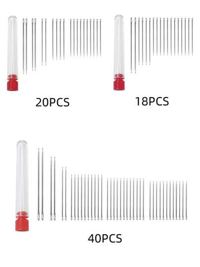 18pcs/20pcs/40pcs Stainless Steel Hand Sewing Needles, Suitable For Regular Sewing, Embroidery, Quilting, Elastic Fabrics - Silver - View 1