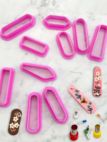 18pcs/Set Long Strip Clay Earring Molds - Pink - View 10