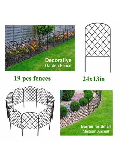 19pcs/pack Outdoor Rustproof Metal Garden Decorative Fence, Mesh Wire Border Animal Barrier, Lawn Fencing Trellis, For Gardening Decoration Animal Protection, 20ft - Black - Black - View 1