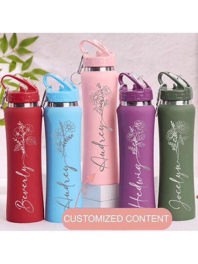 1PC 17oz Custom Name | Couple | Custom Birthday Flower - Carved Stainless Steel Bucket, Leak Proof, Portable, With Straw To Prevent Breakage - Personalized Gift For Gym, Sports, Teachers, Valentine's Day, New Year, And Back To School Season - Multicolor - View 1
