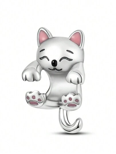 1PC C Cat Claw Print Silver Animal Series Charm Pendant Ball Suitable For Bracelets DIY Women's Jewelry - Silver - View 1