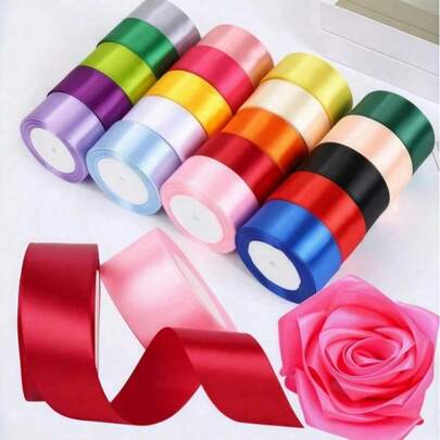 1 cuộn ruy băng satin rộng hai mặt, ruy băng trang trí hộp quà, phụ kiện may mặc, ruy băng dệt dùng trang trí đám cưới, sinh nhật, lễ hội, ruy băng hoa hồng DIY (22 mét/cuộn)