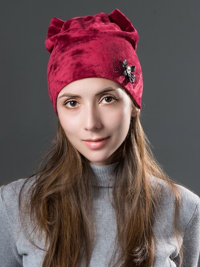 1PC Fashion Cute Cat Ears With Flower Hat Women Autumn Winter Warm Flannel Beanie Girls For Daily Life - Burgundy - View 1