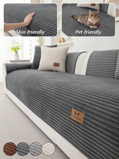 1PC Flannel Straight Stripe SF Leather Label Decorated Sofa Cushion, Pet-Friendly Seat Pad For 1-4 Seater Modular Sofa Protector, Machine-Washable Sofa Slipcover For Living Room, Bedroom, Study Decor, Modern Minimalist Style Premium Sofa Pad - Multicolor - View 28