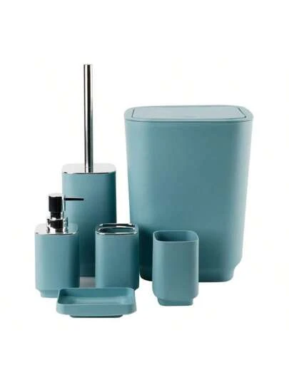 1PC Mouthwash Cup Toothbrush Holder Soap Box Trash Can Set Bathroom Set Toiletries Hotel Bathroom Supplies Simple Bathroom Set Toiletries Toilet Decoration Plastic Bathroom Set - Blue - View 6