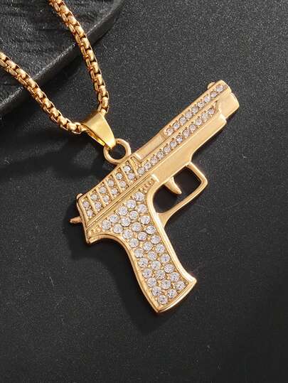 1PC New Fashion Classic Shiny Cold Imitation Desert Eagle Pistol Necklace Rock Punk Cool Street Party Pendant Jewelry Accessories Gift - Gold - View 1