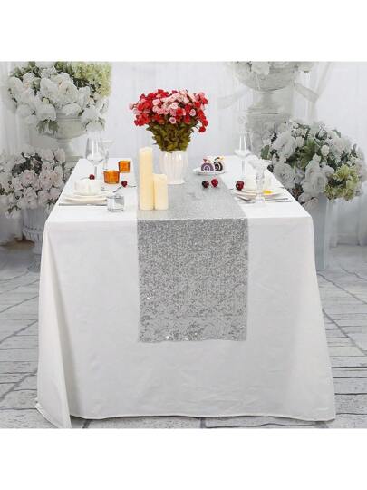 1PC Sparkly Sequin Table Runners For Wedding Decoration Glitter Table Runners Christmas Birthday Baby Shower Party Decor - Silver - View 1