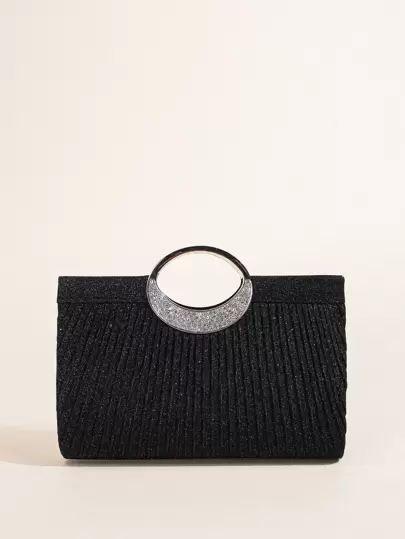 1PC Women Crystal Oval Handle Glitter Clutch Purses For Women Evening Bags Party Clutches Wedding Purses Cocktail Prom Handbags With Pleated - Black - View 1