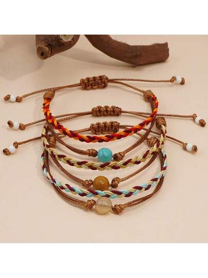 1PC/Casual Personalized/Glass Glossy Synthetic Green Pine Jewelry Rope Woven Bracelet Two Pieces Set/Fashion Accessories/Suitable For Women, Friends, Girlfriends/Suitable For Holiday Parties/Versatile Necklace - Multicolor - View 7