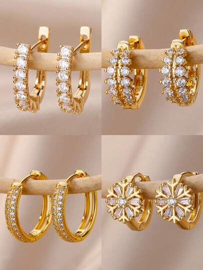 1Pair Cubic Zirconia U Shape Stud Earrings For Women Stainless Steel Earrings Jewelry Wedding Birthday Gift - Multicolor - View 16