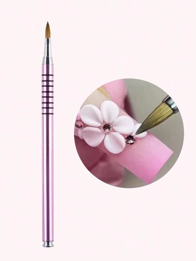 1Pc 3D Acrylic Nail Art Sculpture Brush Pink Liquid Powder UV Gel Carving Pen Flower Painting Manicure Nails Tools Accessories - Baby Pink - View 1