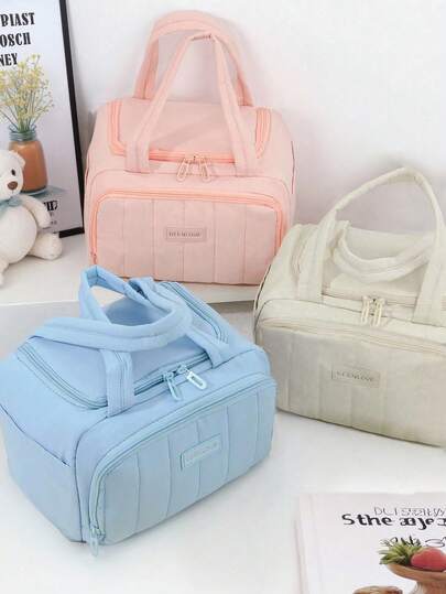 1Pc New Puffy Insulated Lunch Bag Lightweight Large Capacity Quilted Lunch Cooler Bag, Waterproof Leak-Proof Thermal Insulated Lunch Box Bento Pouch Dinner Insulation Bag Student Thickened Cute Lunch Fruit Bag, Soft Padded Down Reusable For Work Picnic Or Travel Kitchen Accessories Back To School Supplies Lunch Bag For Women Lunch Box For School - Multicolor - View 1