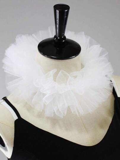 1Pc Women's Fluffy Tulle Ruffle Mock Collar, White - White - View 1