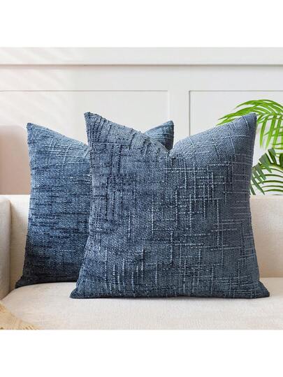1Piece/2Pieces Blue (Insert Not Included)Vintage Chenille Striped Throw Pillow Covers, 100% Polyester Woven Zippered Cushion Cases, Machine Washable, Geometric Patterned Decorative Pillowcases For Sofa, Bed, Dining, Home Office - Blue - View 25