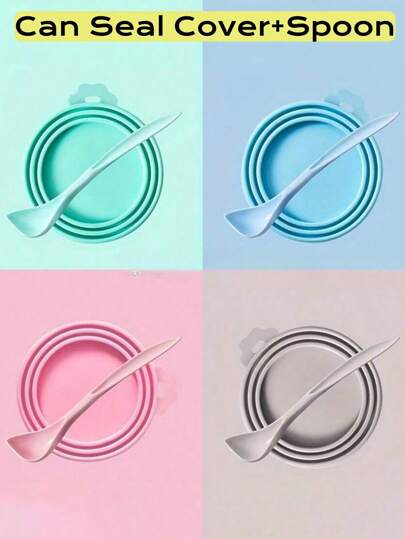 1SET /2SET Pet Can Lid 3-In-1 Food Sealing Lid With Spoon, Food Preservation Silicone Lid, Suitable For Pet Cat Dog Food Cans, Spoon Included - Multicolor - View 16